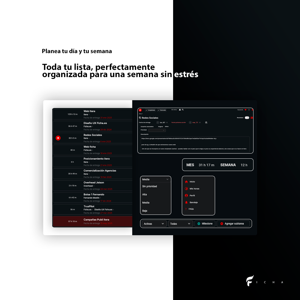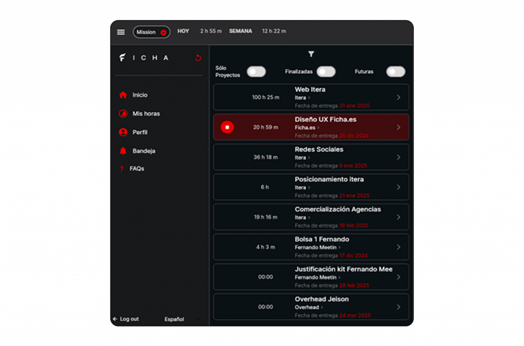 Ficha reduce trabajo manual: registra horas, coordina equipos y centraliza la información sin que tengas que mover un dedo.
