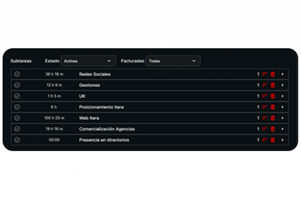Organiza el trabajo por cliente, proyecto o departamento. Asigna responsables, añade plazos y visualiza el estado de cada tarea en un panel intuitivo que te permite ver en segundos qué toca hacer hoy.