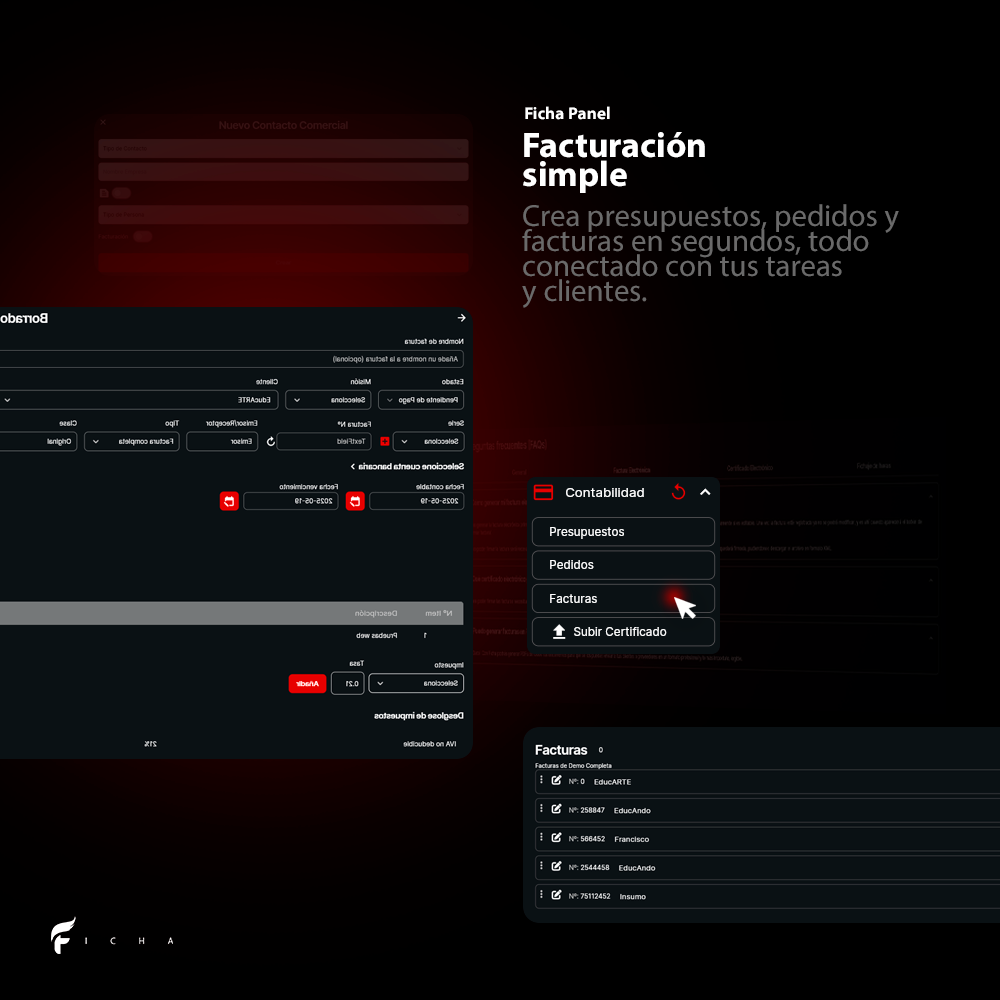 Adapta Ficha a la forma real de trabajar de tu empresa. Según el plan que elijas, ajustamos funcionalidades, flujos y módulos a tus necesidades, con atención directa y acompañamiento personalizado.