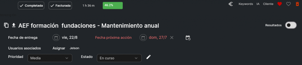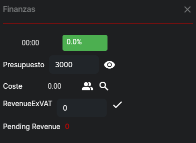 Introduce el presupuesto acordado con tu cliente y observa cómo el sistema calcula automáticamente tu rentabilidad real mientras el proyecto avanza. Esta visibilidad te permite intervenir a tiempo.